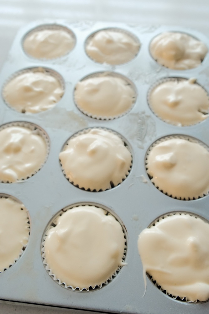1. Preheat the oven to 325oF and line your cupcake pan with liner. You can also use cupcake cups in a baking sheet. Alternatively you can brush on melted butter into the cupcake pan.