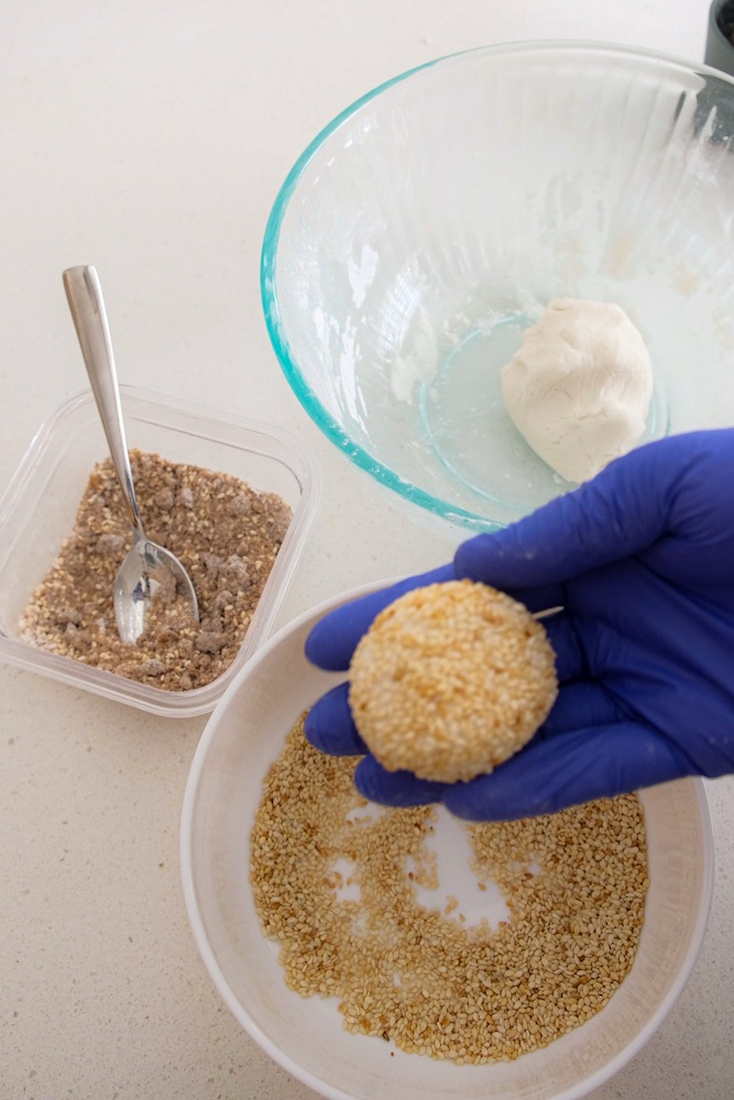 - Repeat until all of the sesame mochi balls are done.